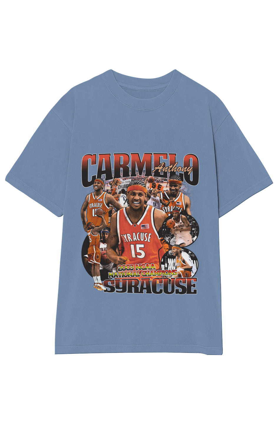 Yo, hoop heads and college ball enthusiasts, check this out! We've got a Carmelo Anthony Syracuse tee that's straight fire. This shirt isn't just a piece of cloth; it's a nod to one of the illest runs in college basketball history, led by none other than 'Melo himself. If you weren't there to witness it, well, here's your chance to wear it!