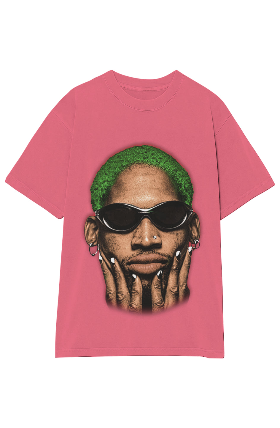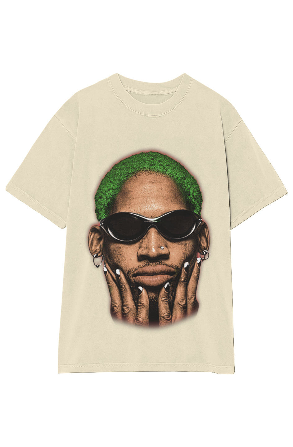 Dennis Rodman Big Face Tee: Revive iconic '90s flair with our Dennis Rodman Big Face Tee. Made from a 7.5 OZ Super Max Heavyweight Garment Dye fabric, this tee boasts 100% ring-spun cotton for a pre-shrunk, ultra-comfortable fit. Its vintage-inspired retro print captures the worn-in aesthetic that defined an era, while the reinforced twill-taped shoulder-to-shoulder construction and double-needle stitching on sleeves and bottom hem ensure enduring quality.