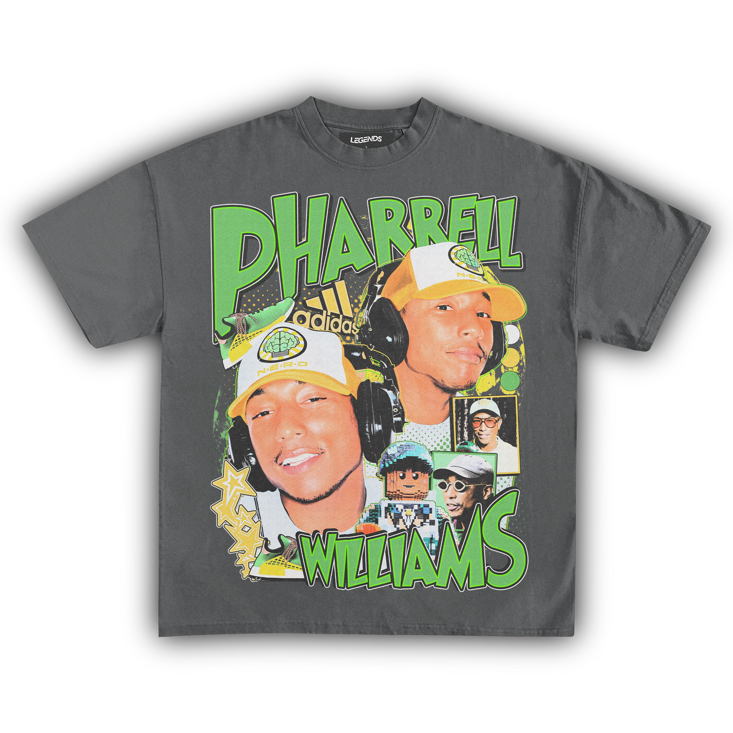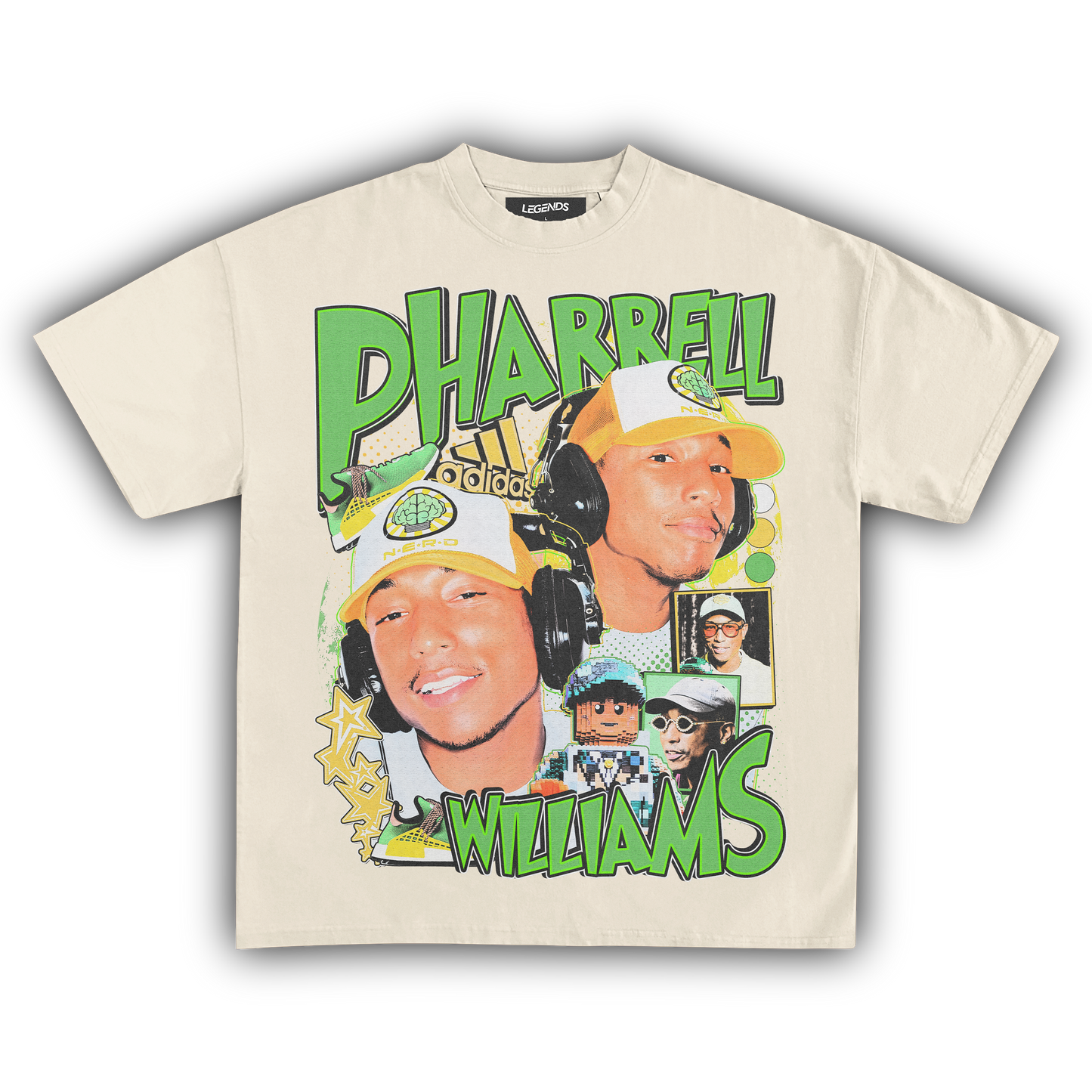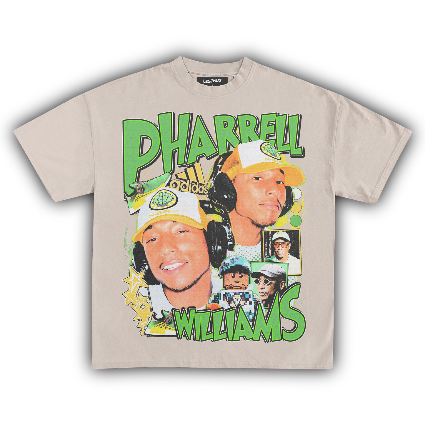 The Pharrell Williams Retro Tee channels the energy of a true music innovator with a street-ready flair. Built for an oversized streetwear fit, this tee is crafted from heavyweight 7.5 oz, 100% ring-spun cotton that’s both sturdy and smooth. The garment dyed fabric brings that authentic vintage look, while the high resolution DTG graphic captures Pharrell’s legendary vibe in razor-sharp detail. Complete with a 1-inch thick collar, this tee stands out on any block, blending old-school swagger with modern comfort. Perfect for those who know real style when they see it.