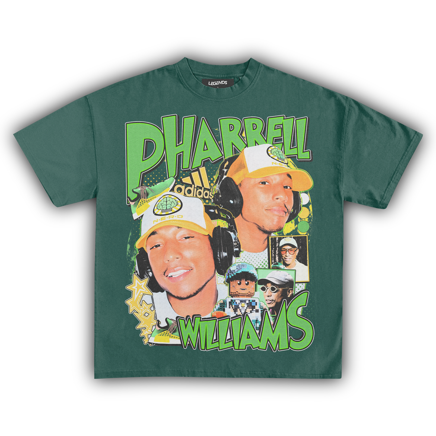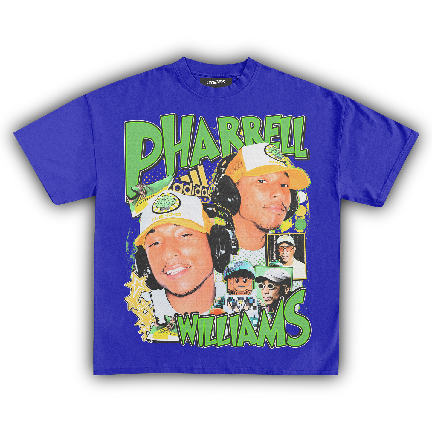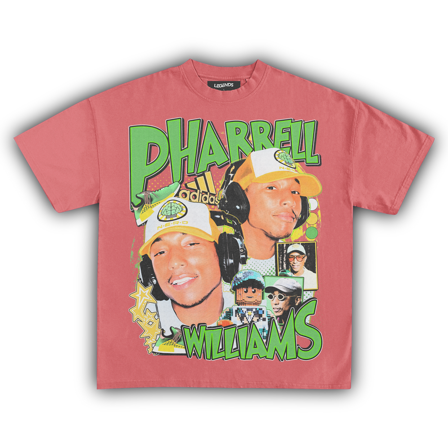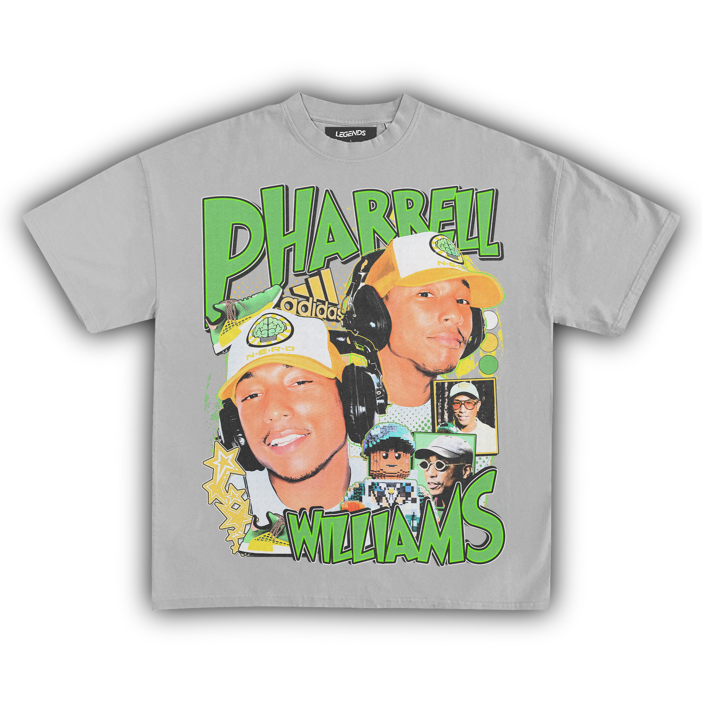 The Pharrell Williams Retro Tee channels the energy of a true music innovator with a street-ready flair. Built for an oversized streetwear fit, this tee is crafted from heavyweight 7.5 oz, 100% ring-spun cotton that’s both sturdy and smooth. The garment dyed fabric brings that authentic vintage look, while the high resolution DTG graphic captures Pharrell’s legendary vibe in razor-sharp detail. Complete with a 1-inch thick collar, this tee stands out on any block, blending old-school swagger with modern comfort. Perfect for those who know real style when they see it.