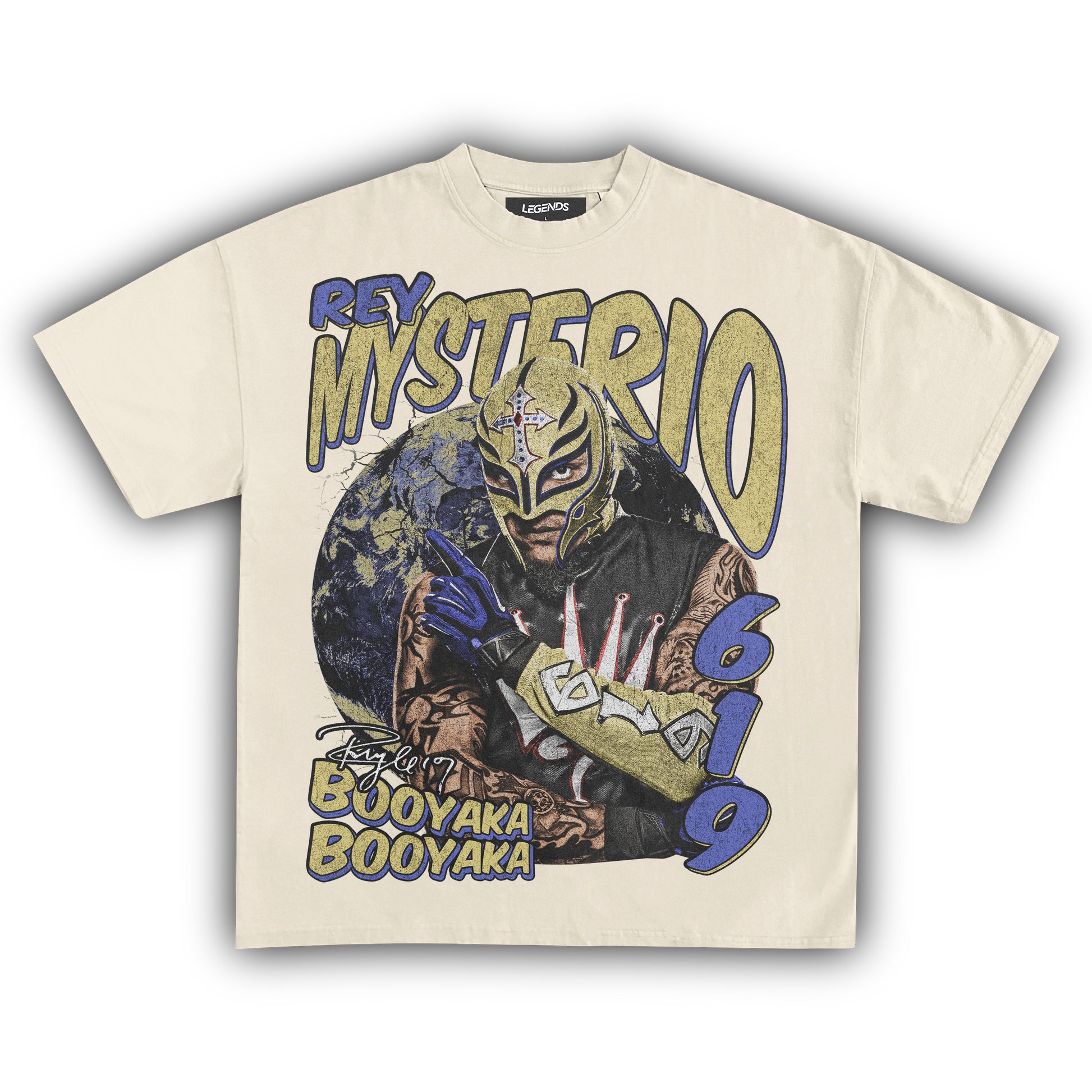 Unleash the ultimate lucha energy with the Rey Mysterio Booyaka Tee, designed for those who respect the high-flying legend. With a heavyweight 7.5 oz build and 100% ring-spun cotton, this tee’s got durability and comfort on lock. The garment-dyed fabric delivers a retro look that’s straight fire, and the oversized streetwear fit keeps your style on point. Topped off with a crisp high resolution DTG graphic and a solid 1-inch collar, this tee is all about repping that Booyaka spirit, loud and proud.